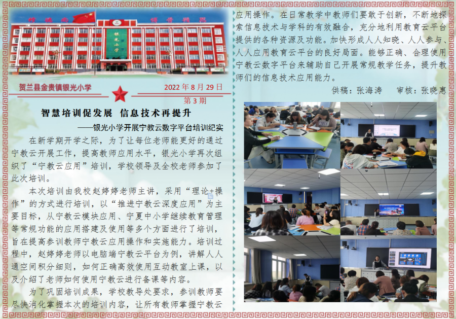 在新学期开学之际,为了让每位老师能更好的通过宁教云开展工作,提高教师应用水平,银光小学再次组织了“宁教云应用”培训,学校领导及全校老师参加了此次培训。