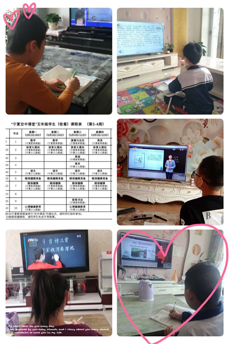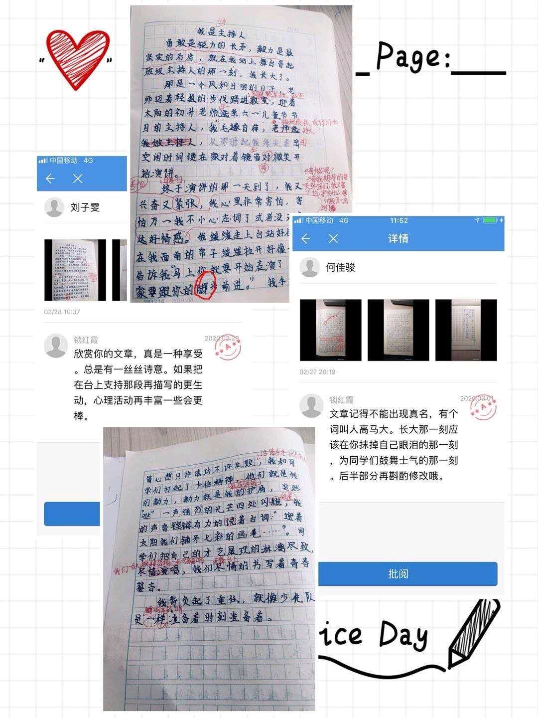 五年级语文组的老师们,充分利用“云校家”和”微信群”了解孩子们在家观看“空中课堂”的效果,如:练习展示,书上批注,积累词句段的图片,课文朗读音频等。 疫情还未结束,“空中课堂”依旧发挥着举足轻重的作用!面对这种特殊的教学形式,没有现成的方法去照搬!老师们只能发挥集体智慧,利用线上教研,为“空中课堂”保驾护航!相信这个春天,“新课堂”这朵花会开得更艳!撰稿:徐媛审核:李丹资料提供:五年级全体语文老师