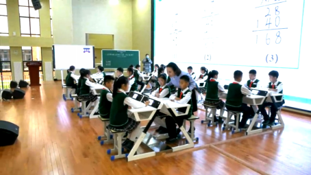 来自银川来自兴庆第二小学的马晓红老师还进行了现场数学课的展示,所授课程选自三年级下册第四单元《两位数乘两位数》。