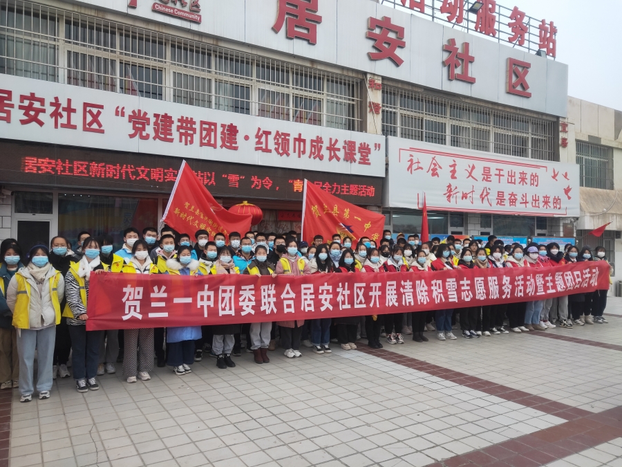 金虎送祝福,瑞雪兆丰年!2月6日晚,贺兰县迎来一场大范围降雪。为防止降雪量增多造成部分道路积雪成冰,给市民出行带来不便,同时助力文明城市创建,贺兰一中团委于2月10日上午9点至12点联合居安社区开展主题为“共御冰雪严寒 共建美丽贺兰”的清除积雪志愿服务活动。参与居安社区管辖处周边区域及交通主干道、广场、社区道路的清扫积雪行动,保障市民的出行安全。