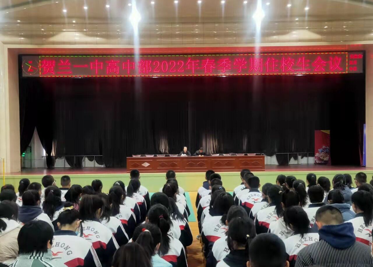 为做好校园安全工作,进一步严格住校生纪律,规范住校生行为,切实加强学校宿舍管理,2月22日下午5点,贺兰一中高中部召开2022年春季开学住校生大会。大会由政教主任马启军主持,全校1000余名住校生参加大会。