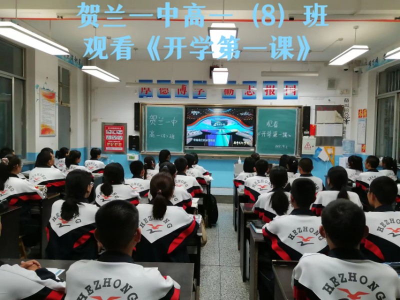 2022年9月1日,贺兰一中利用晚自习时间组织全体高中学生观看2022年秋季学期《开学第一课——奋斗成就梦想》。