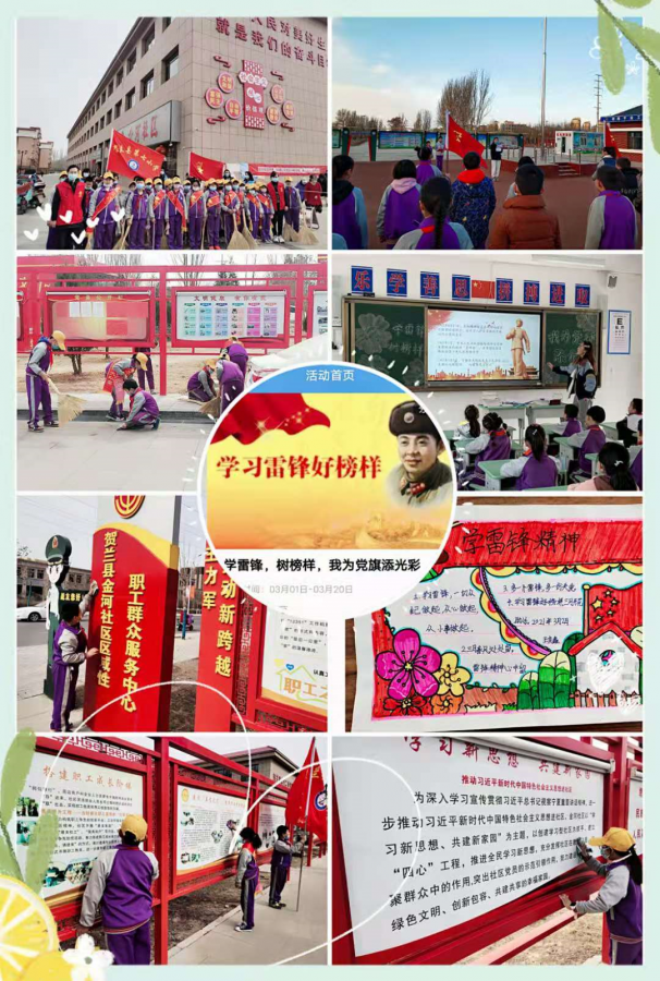 春雨筑梦润青春,雷锋精神永相传。为喜迎中国共产党建党100周年,深入贯彻落实习总书记关于传承和弘扬雷锋精神的系列讲话精神,在第58个学雷锋纪念日到来之际,贺兰七小积极引导全体师生学先锋、做先锋,用实际行动争做新时代雷锋传人。