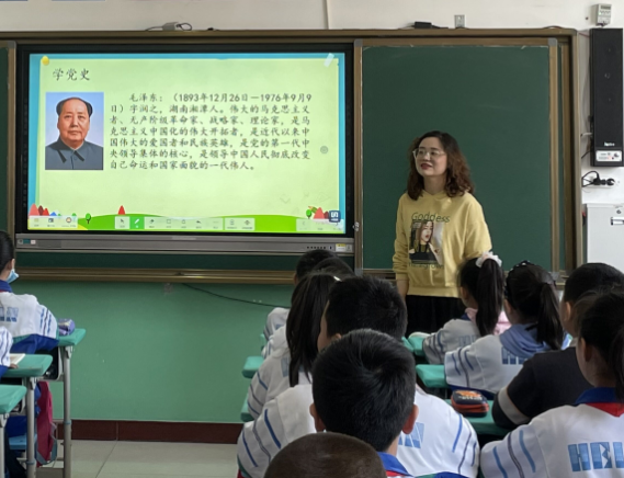 开学第二周,学校党总支书记王艳、教导处熊丽华副校长深入思政课堂,在指导思政教学的同时,实地探索《道德与法治》“党史学习三分钟”的效果。三年级吴慧峰老师、五年级保阳阳老师向学生简介了一代伟人——毛泽东,并延伸学习了毛泽东诗词《沁园春.雪》《长征》,学生们领略了无产阶级革命家的治党豪情和雄韬伟略。五年级吴芳老师讲述了中国共产党创始人之一——李大钊先生的生平事迹,并为孩子们摘读了李星华描写父亲为革命事业而英勇就义的动情散文——《十六年前的回忆》,激发了学生们对爱国志士的崇敬之情。