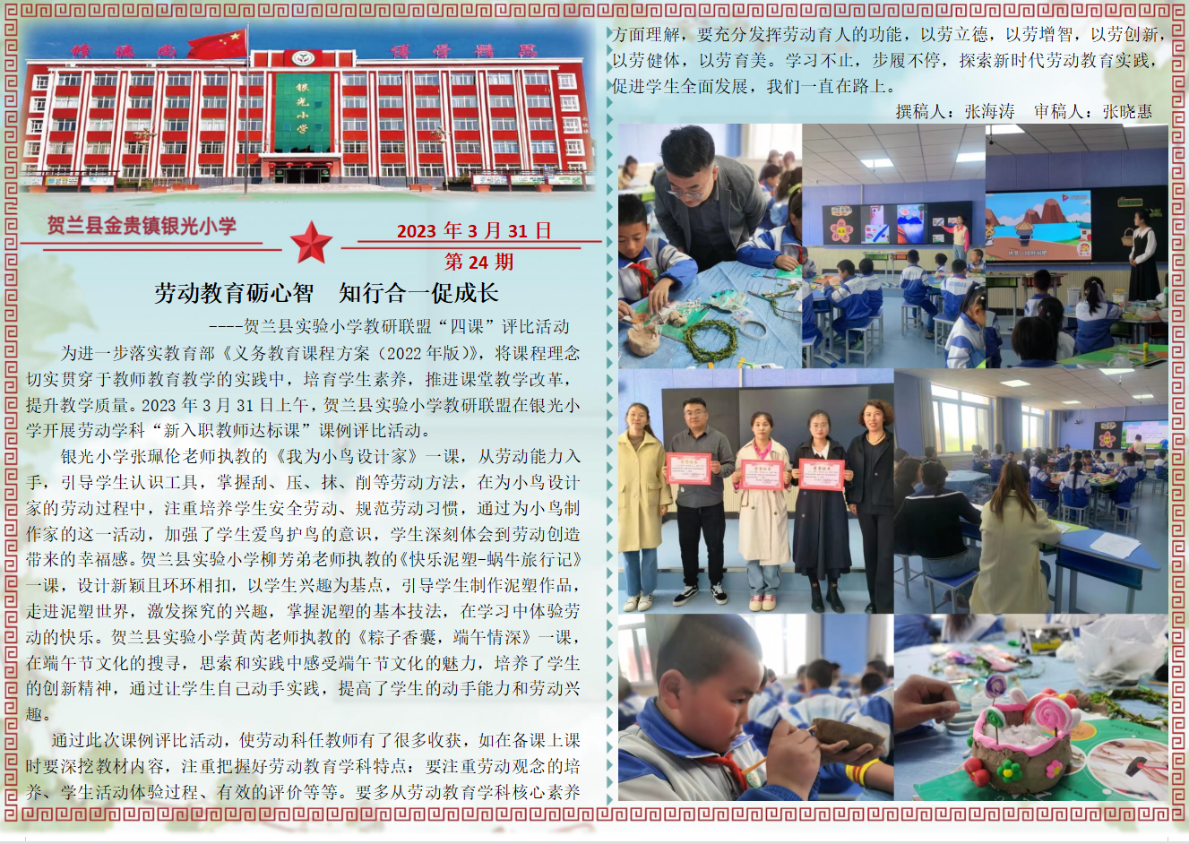 为进一步落实教育部《义务教育课程方案(2022年版)》,将课程理念切实贯穿于教师教育教学的实践中,培育学生素养,推进课堂教学改革,提升教学质量。2023年3月31日上午,贺兰县实验小学教研联盟在银光小学开展劳动学科“新入职教师达标课”课例评比活动。