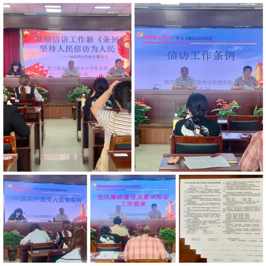 为深入学习贯彻习近平总书记关于加强和改进人民信访工作的重要思想,践行人民信访为人民的工作要求,大力推进《信访工作条例》学习宣传和贯彻实施工作,连日来,我校采取了多种形式开展《信访工作条例》宣传活动。5月24日下午,银光小学开展了主题为“贯彻信访工作新《条例》 坚持人民信访为人民”的主题党日活动,全体党员和积极分子参加活动。