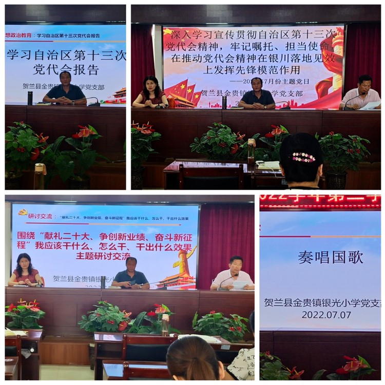 按照贺兰县教育体育党工委的要求,为学习好、宣传好、贯彻好自治区第十三次党代会精神,进一步发挥我校党员的先锋模范作用,切实提高我校党员思想和行动,并统一到党代会精神中去,我校党支部于7月7日召开“深入学习宣传贯彻自治区第十三次党代会精神,牢记嘱托、担当使命,在推动党代会精神在银川落地见效上发挥先锋模范作用”主题党日活动,全体党员及积极分子参加。
