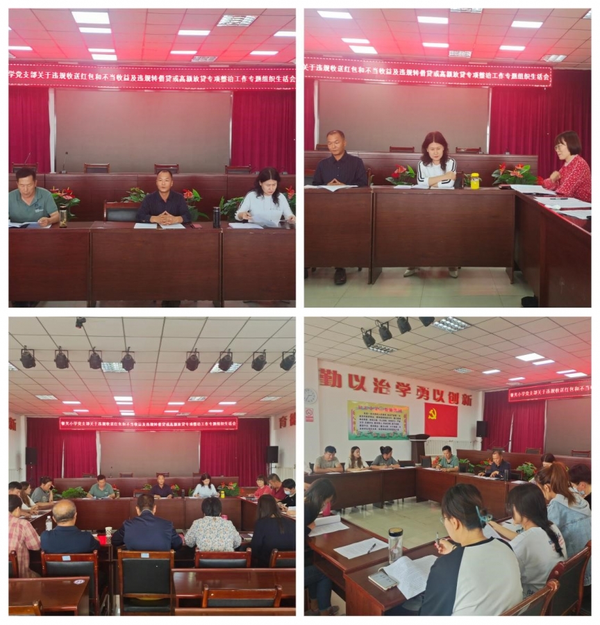 为进一步落实《贺兰县教育系统开展违规收送红包礼金和不当收益及违规借转贷或高额放贷专项整治工作方案》,切实提高学校教师的政治站位和思想意识,按照县教育体育局党工委的统一部署,银光小学党支部于8月28日下午召开了专题组织生活会,全体党员参加了会议。