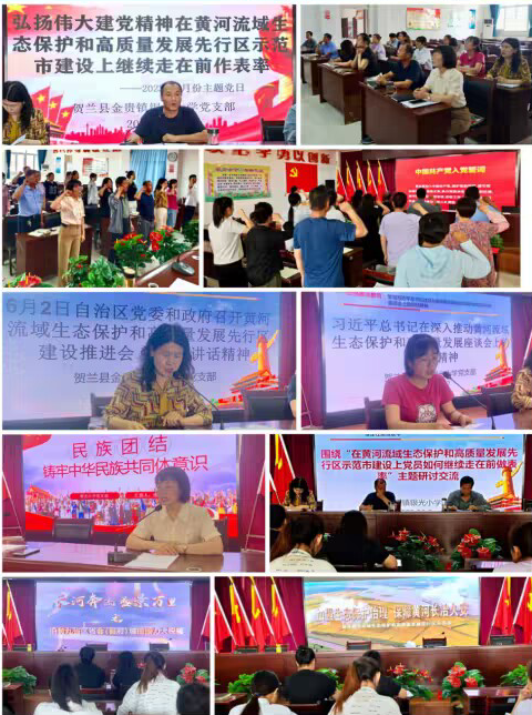 为深入赏彻落实贺兰县开展好“黄河流域生态保护主题宣传‘实践月'活动”有关要求,进一步贯彻落实好习近平总书记在黄河流域生态保护和高质量发展座谈会上的讲话精神,银光小学党支部于6月27日上午开展主题为“弘扬伟大建党精神,在黄河流域生态保护和高质量发展先行区示范市建设上继续走在前做表率”的主题党日活动,活动由支部副书记李晓东同志主持,全体党员参加。