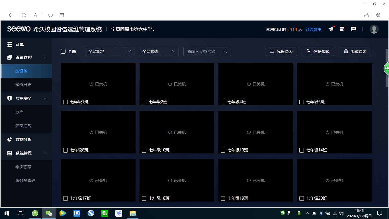 各个班级与各功能室的一体机已经安装希沃管家软件,实现了网上监督管理的功能。
