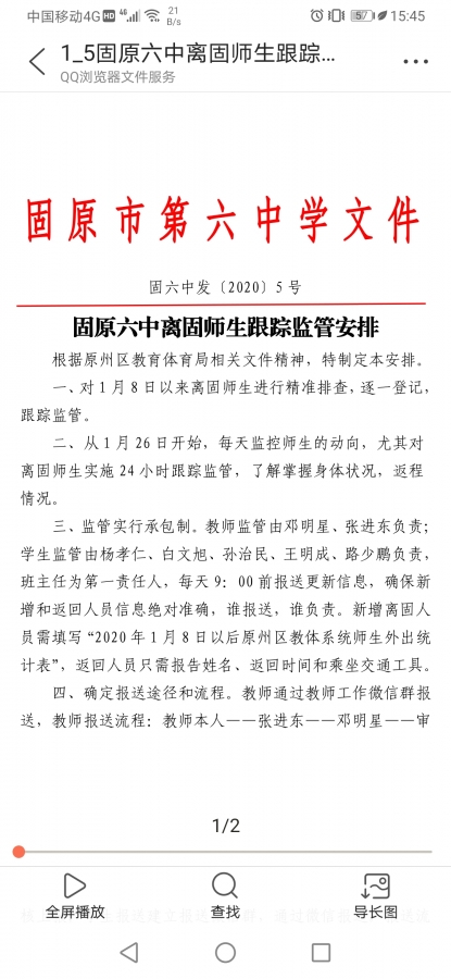 固原六中进一步加强新型冠状病毒感染的 肺炎疫情防控工作实施方案