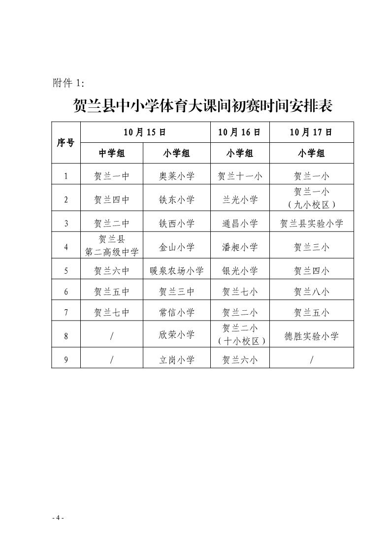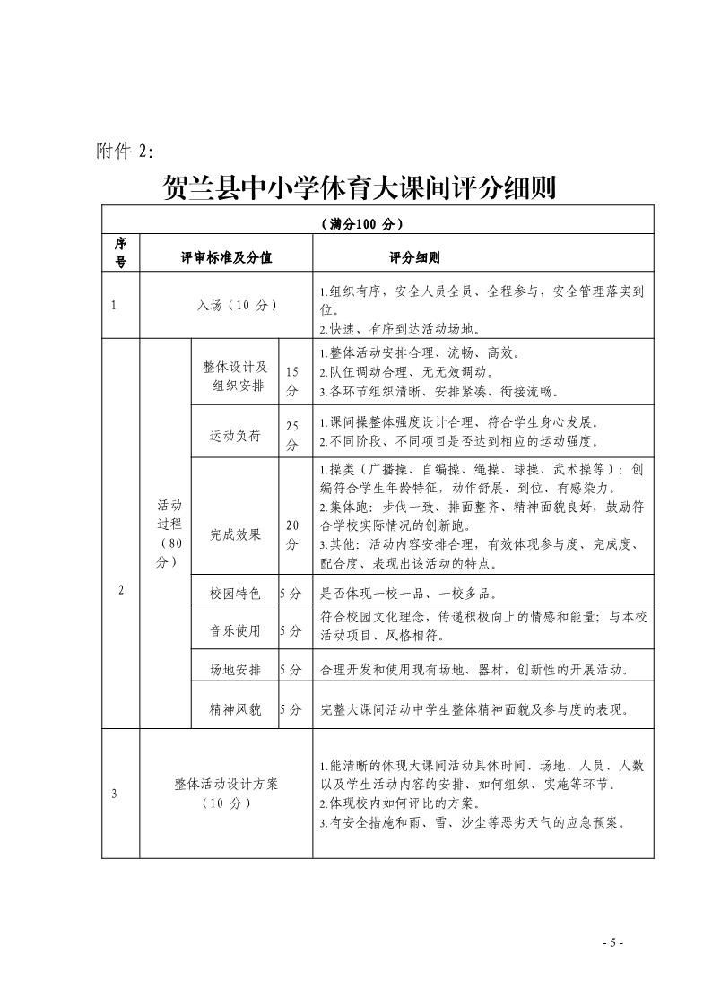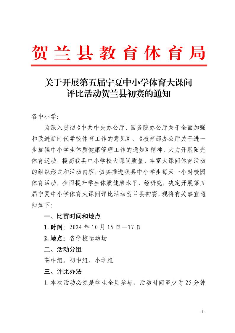 关于开展第五届宁夏中小学体育大课间评比活动贺兰县初赛的通知